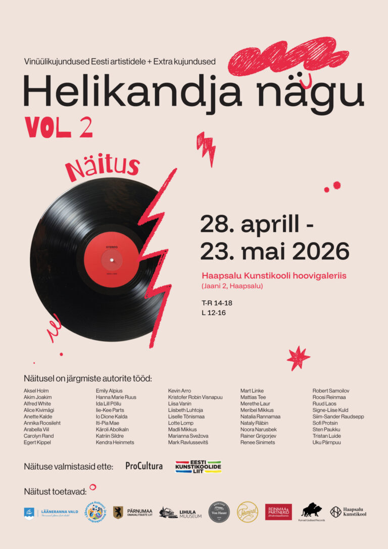 Teisipäeval, 28. aprillil kell 17 avame Haapsalu Kunstikooli hoovigaleriis õpilaskonkursi „Helikandja nägu“ jätkunäituse “Helikandja nägu vol 2”, kus saab vaadata Eesti muusikutele loodud vinüülplaatide kujundusi.